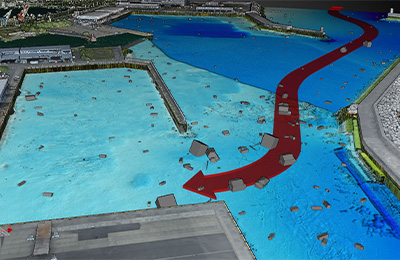 今回の訓練では、事前に取得・整備していた「平常時データ」とその運用ワークフローを用い、津波発生時のシミュレーションを実施しました。事前に取得した高精度データを参照することで、堆積物や漂流物の位置を短時間で把握し、支援船舶や救援チームの安全な航行ルートの設定を想定通りに行うことが可能となります。また、自治体との協定に基づき、この技術やデータは平時の港湾管理(維持管理や計画)にも活用される予定です。