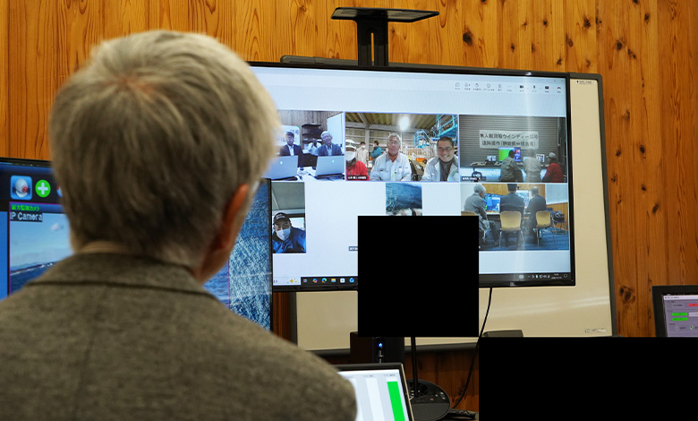 本年度は三拠点(静岡の海洋技術研究所+福島の2地点)を結ぶ通信体制を構築し、Starlinkを利用した衛星通信により、遠隔地からの安定した操縦・監視を実現しました。これにより、操作者が現地にいない状態でもリアルタイムに航行制御やセンサー管理が行えることを確認しました。