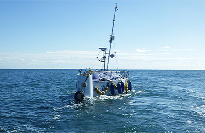無人観測船を活用し、陸上基地から遠隔操作で安全に放射能観測を実施できます。