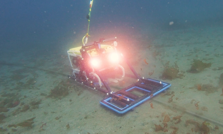 小型ROVに金属探知機を搭載することで、海底ケーブルの平面位置や埋没深度を正確に特定し、設置状況を詳細に調査することが可能です。